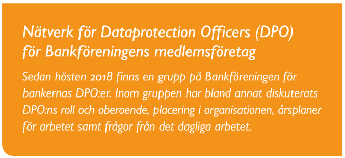 Dataskyddsförordningen har nu varit ikraft i drygt ett år. Som nämnts tidigare i detta nummer av Bankfokus är gränsdragningen mot penningtvättslagen en komplicerad fråga, men även incidentrapporteringen är något som har tagits upp av bankerna, berättar Agneta Brandimarti, jurist på Bankföreningen.