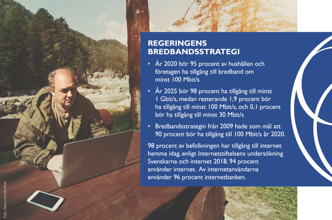 I framtiden kommer många välfärdstjänster att erbjudas digitalt, spår regeringen, till exempel förväntas en stor del av vården ges på distans. Förhoppningen är också att digitaliseringen ska bidra till omfattande effektivisering av det offentliga. Samtidigt ger bredbandsuppkoppling förutsättningar för företag att verka oavsett var de befinner sig, vilket därmed genererar sysselsättning och tillväxt i hela landet, konstaterar regeringen. På motsvarande sätt får kunder, oavsett bostadsort, tillgång till varor och tjänster från företag som är digitala.